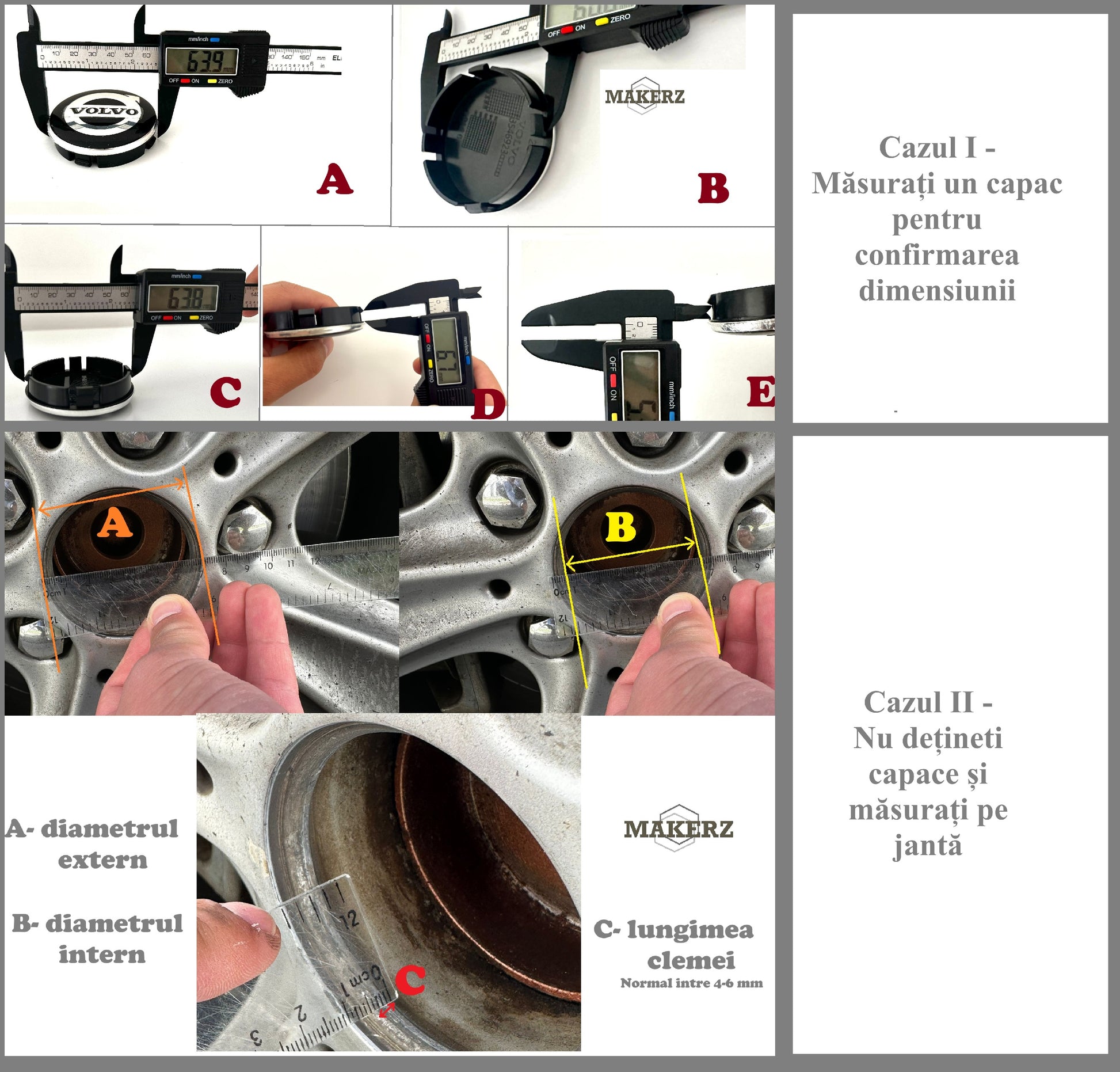 Vă rugăm să măsurați capacele dvs. înainte de a comanda, pentru a vă asigura de dimensiuni. Dacă nu sunteți siguri că aveți jante OEM sau nu vă descurcați, ne puteți contacta direct prin orice cale de comunicare disponibilă.