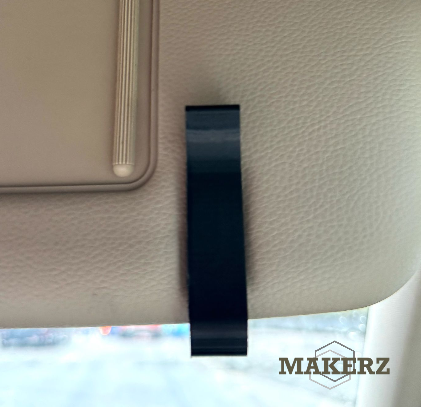 Suport de ochelari printat 3D, perfect pentru mașină, care se fixează ușor pe parasolar. Oferă o soluție simplă și eficientă pentru depozitarea ochelarilor, protejându-i de zgârieturi și asigurând un acces rapid în timpul condusului. Designul compact și materialul rezistent îl fac un accesoriu discret și durabil, ideal pentru orice vehicul.